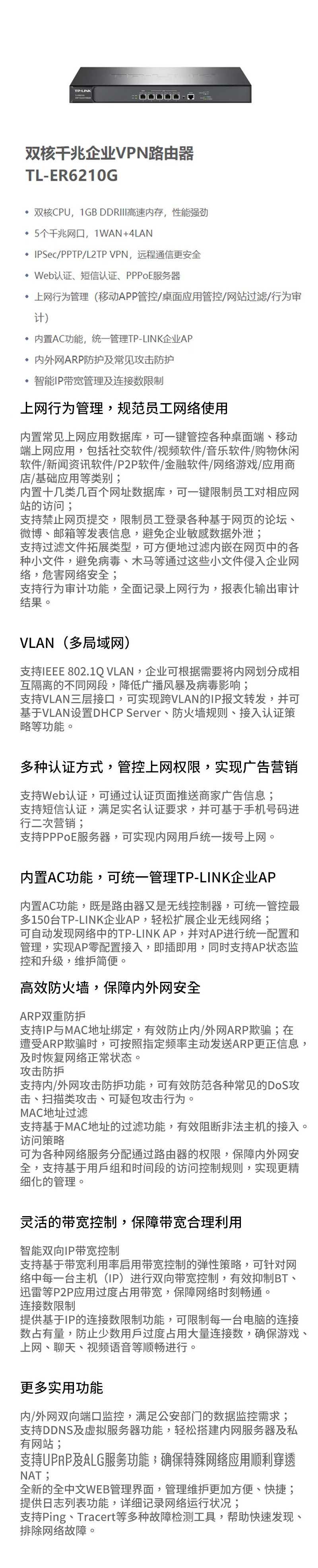 普联(TP-LINK) TL-ER6210G 企业级千兆有线路由器 防火墙/AP管理 上网行为管理 内置AC