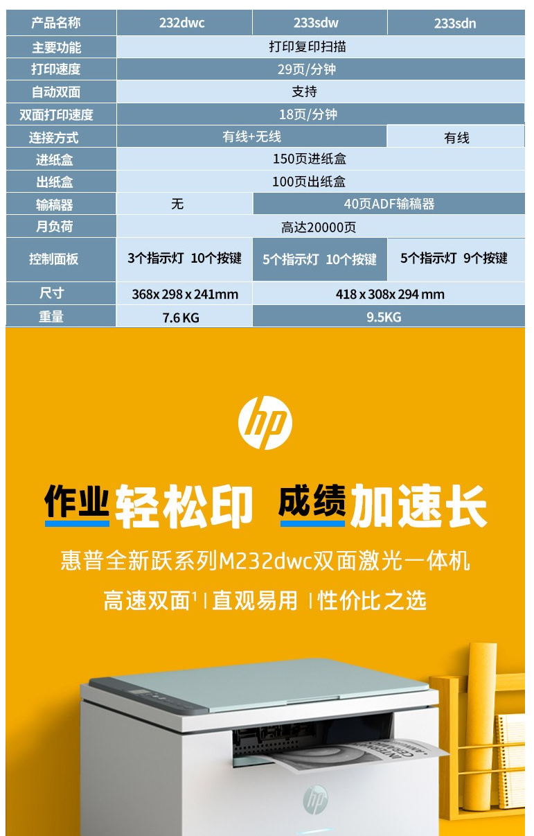 惠普(HP) M233sdn激光多功能一体机(打印、复印、扫描) 自动双面打印