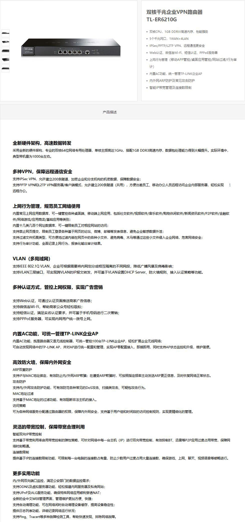 普联(TP-LINK) TL-ER6210G 企业级千兆有线路由器 防火墙∕VPN∕上网行为管理