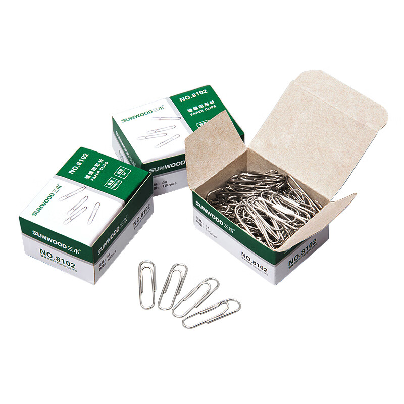 三木(SUNWOOD) 8102镀镍回形针金属防锈 100枚/盒 10盒装