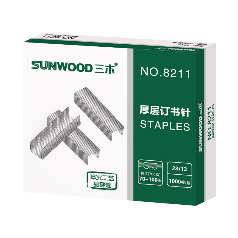 三木(SUNWOOD) 8211 厚层订书钉23/13可订100页1000枚/盒
