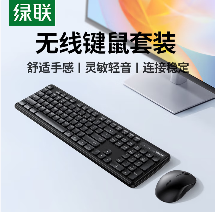 绿联(UGREEN) MK331无线键盘 轻音办公键盘 适用笔记本电脑台式机 配电池 键鼠共享USB无线接收器
