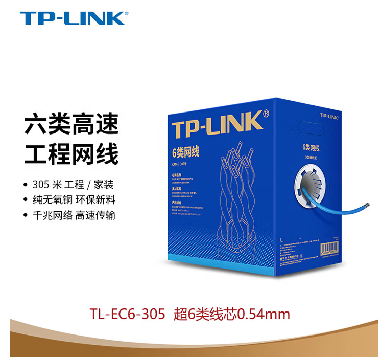 普联(TP-LINK) 六类非屏蔽网线CAT5监控POE双绞线TLEC5e305B 六类