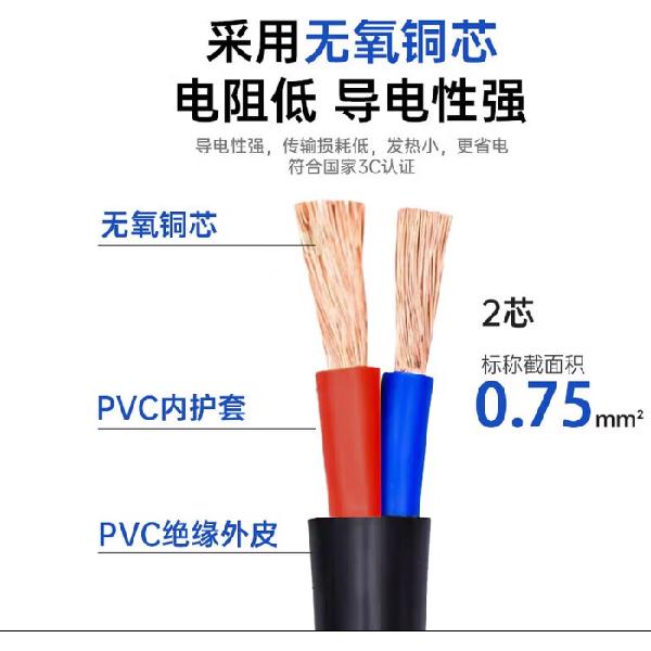 海康威视(HIKVISION) 监控专用电源线 RVV无氧铜线芯 环保绝缘 符合国家3C认证 耐磨耐拉伸 国标两芯非屏蔽 DS-1RVV2C050/E