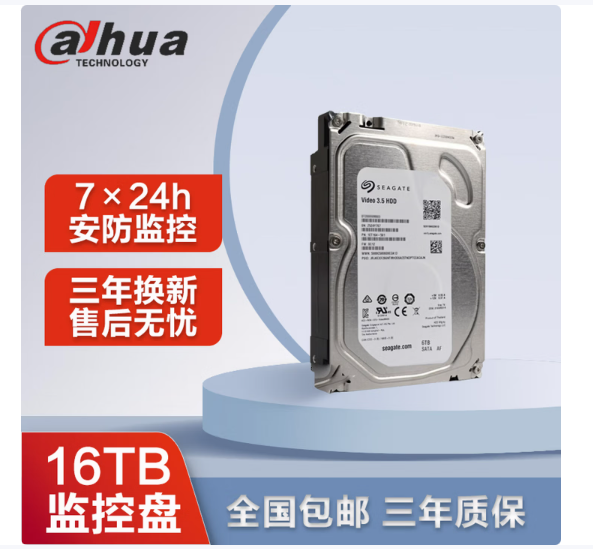 浙江大华 硬盘SATA接口3.5英寸机械硬盘 安防录像机摄像头存储专用 希捷16TB监控级硬盘
