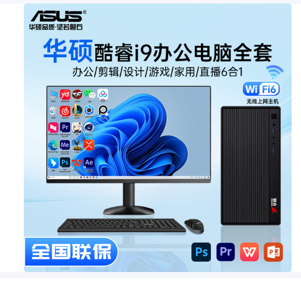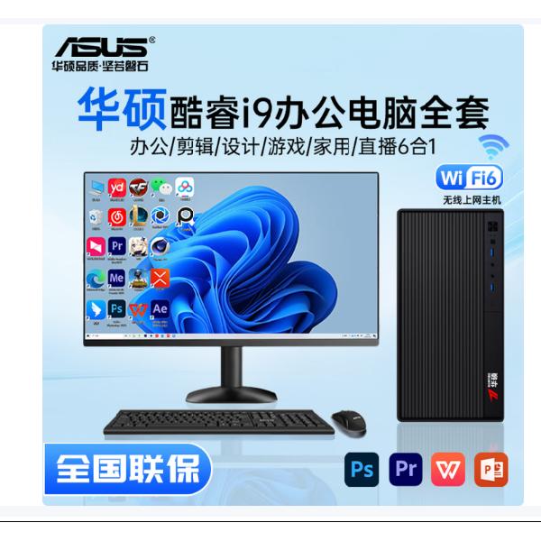 华硕(ASUS) 台式电脑主机独显商务办公家用游戏设计企业电脑 华硕主机+27英寸【护眼显示器】 配六:英特尔i9/32G+1TB/16G独显