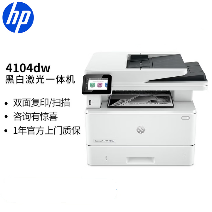 惠普(HP) 4104dw 一体机A4黑白激光复印机扫描机一体机a4自动双面打印无线有线网络商用办公家用标配