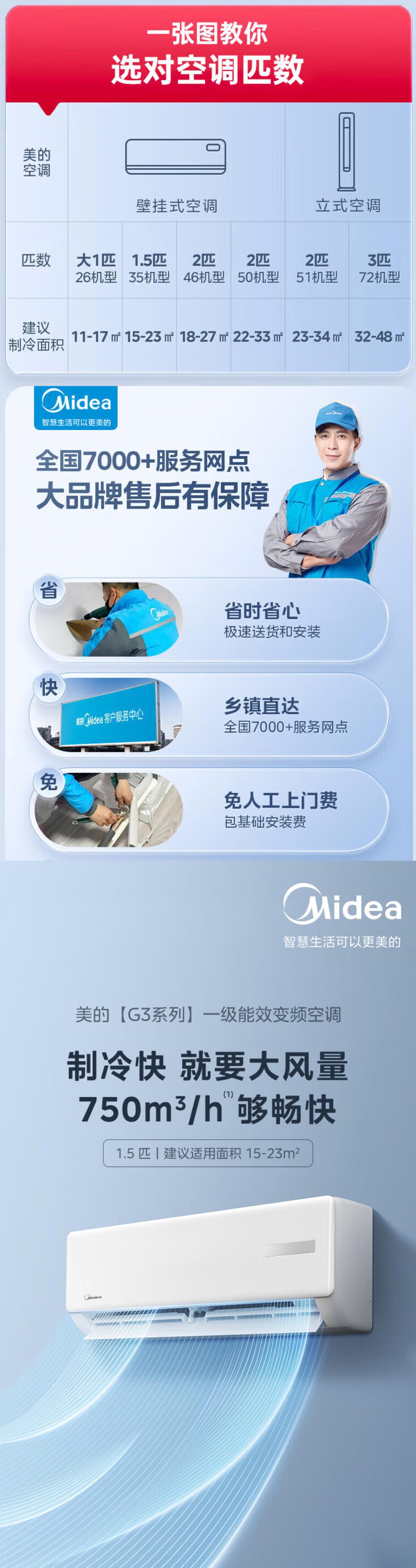 美的(Midea) 1.5匹G3系列新一级能效变频冷暖 壁挂式空调挂机卧室空调KFR-35GW/G3-1(商用)工程机