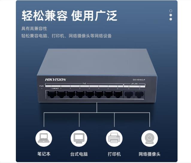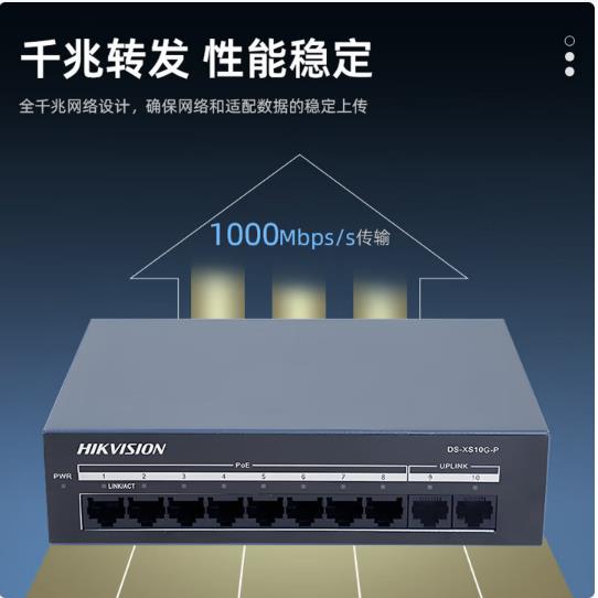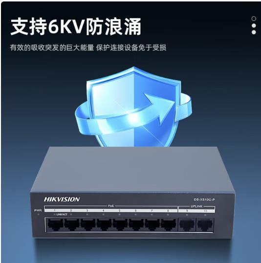 海康威视(HIKVISION) 8口千兆POE交换机 网线供网供电 安防监控国标网络网线分线器 DS-XS10G-P