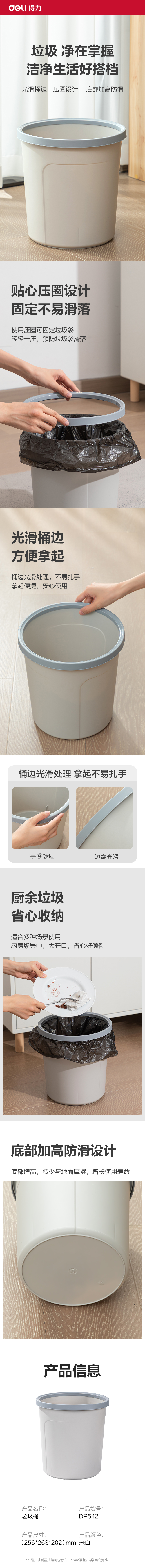 得力(deli) 清洁桶 DP542 圆形 米白 1个