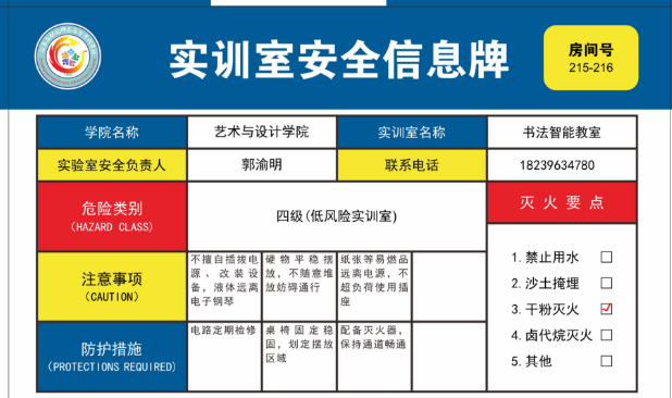 标识/展示 亚克力实训室安全信息牌20*30cm