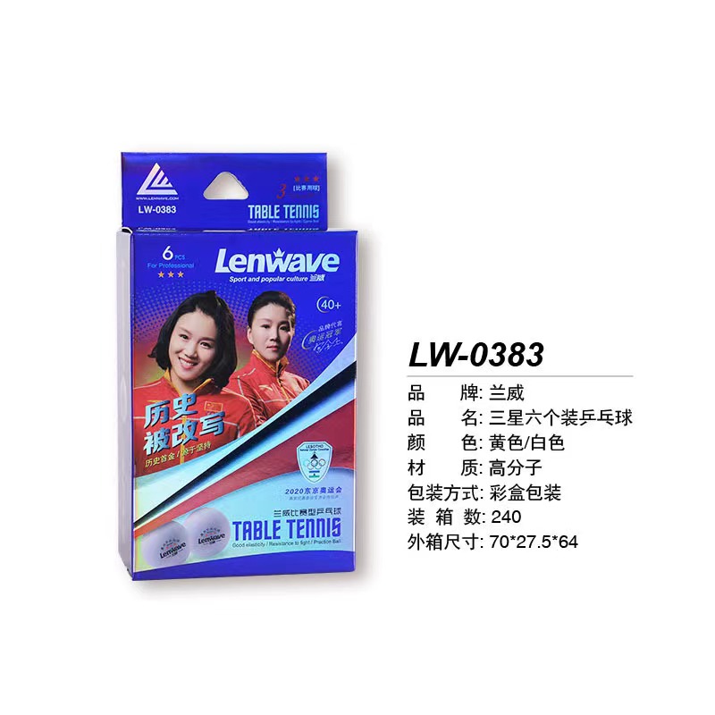 兰威 LW-0383三星级比赛训练乒乓球 6个/盒