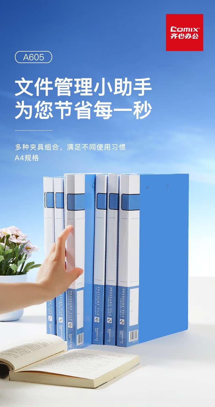 齐心(COMIX) A605 A4文件夹/资料夹/双强力夹 蓝色
