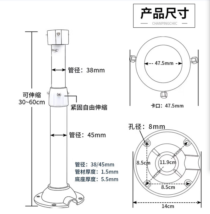 海康威视(HIKVISION) DS-1296ZJ-H 枪机通用伸缩杆支架