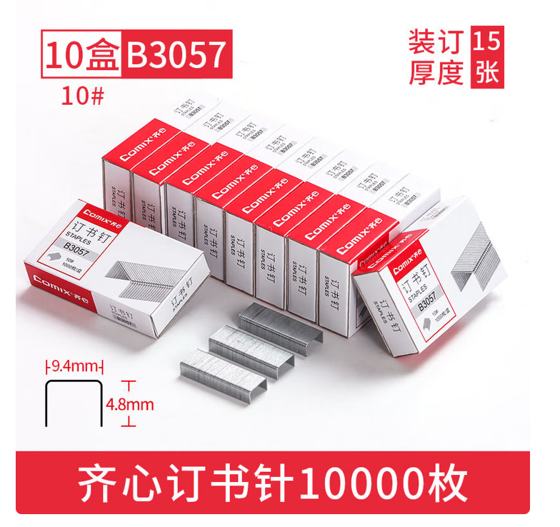 齐心(COMIX) 订书钉通用型订书针24/6定书针12号书钉10小号钉书针23/10 10小号-可订约15张B3057十盒