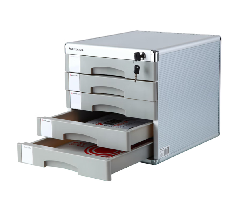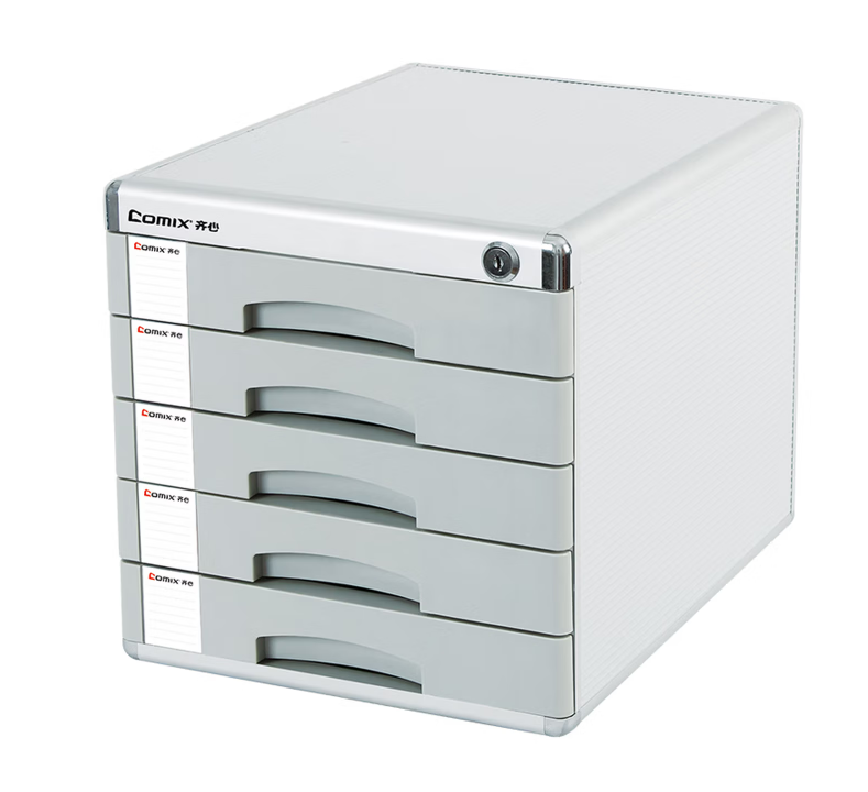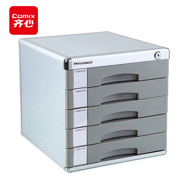 齐心(COMIX) 五层带锁金属包边桌面文件柜 带索引标签 抽屉资料收纳柜 办公用品B2245
