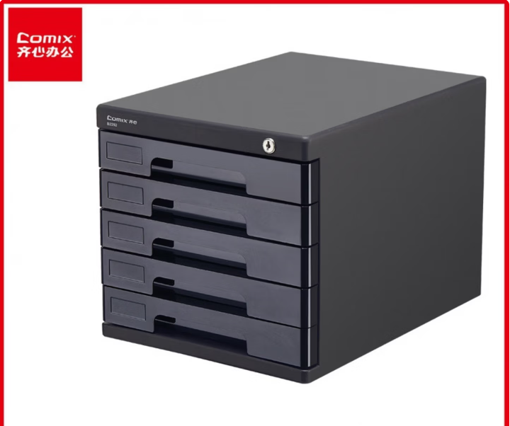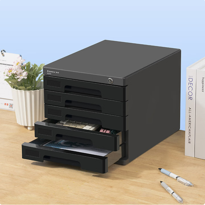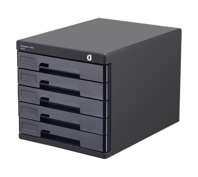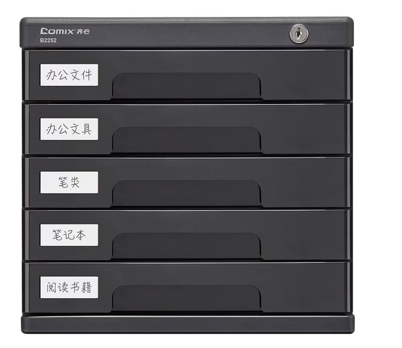 齐心(COMIX) B2252 塑胶文件柜(5层带锁)桌面办公收纳柜办公抽屉柜批发 五层带锁黑色【360*270*257mm】