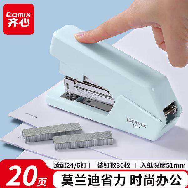 齐心(COMIX) B3114省力订书机/订书器墨兰迪色20页适用24/6、26/6钉 办公学习用品冰川蓝